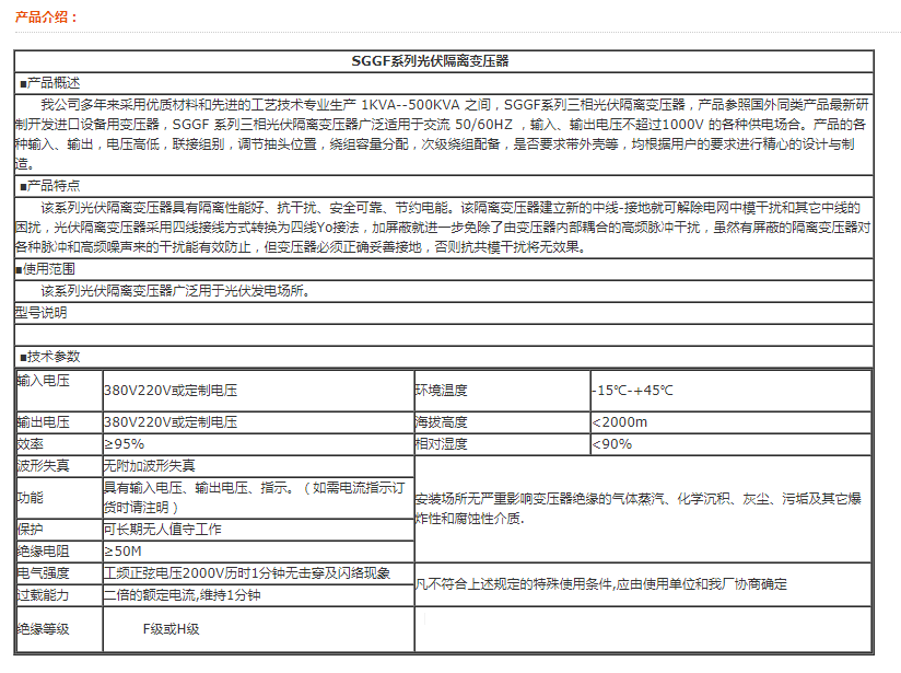 光伏隔离变压器